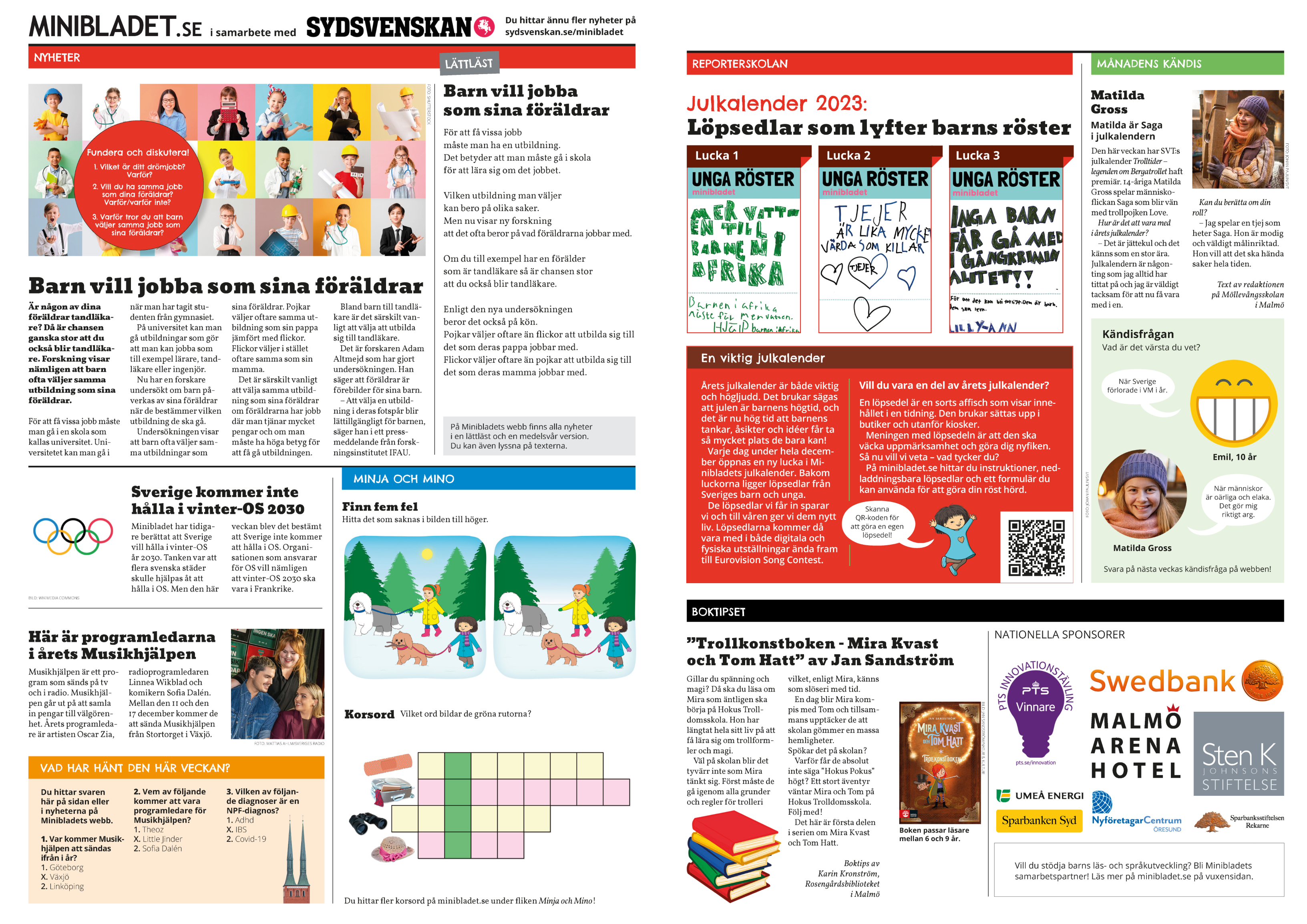 Minibladet är en tidning som gör nyheter för och tillsammans med barn. Nyheterna publiceras på minibladet.se samt i samarbetande dagstidningar som Sydsvenskan.